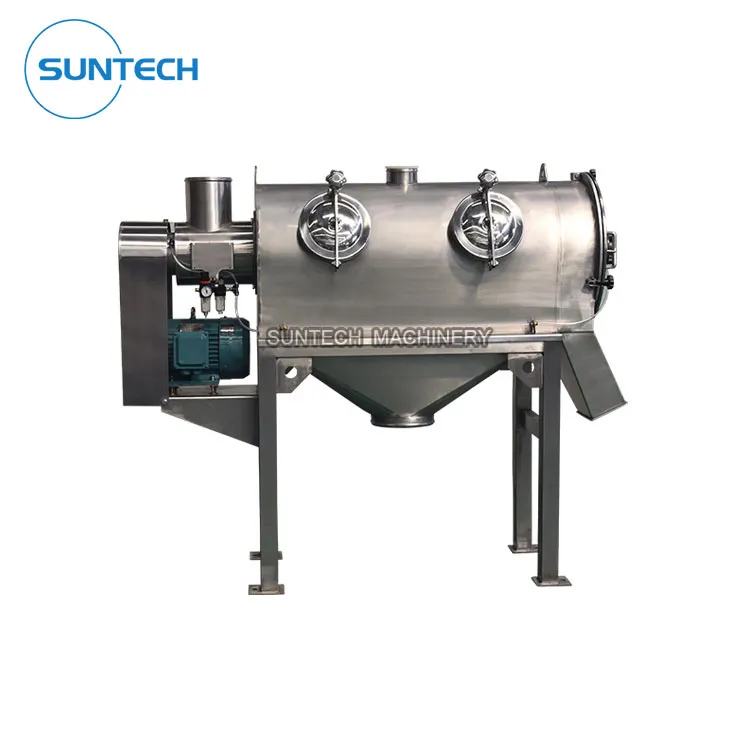 מכונת סינון צנטריפוגלית נטולת אבק היא סוג אחד של מכונת סינון אבקה סגורה לחלוטין. מסננת המסך היא גלילית וממוקמת בתוך המכונה. לאחר שהחומר עובר דרך מסוע הבורג למכונת הנפה, הוא מעורבב עם זרימת האוויר ומפורק לתוך גליל הרשת; החומר נתון לכוח צנטריפוגלי ולכוח הנעה ציקלון בו זמנית דרך להבי גלגל הרוח בגליל הרשת, כך שניתן לרסס את החומר דרך הרשת ולהוציא אותו מנמל פריקת החומר העדין. חומרים שאינם יכולים לעבור דרך הרשת נפלטים מנמל פריקת החומר הגס לאורך דופן גליל הרשת.